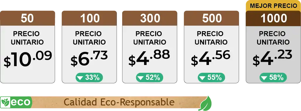 La base de bambú proporciona un área perfecta para grabado láser, ideal para logotipos que buscan destacarse con elegancia. Por su parte, la parte superior en caña de trigo es apta para impresión en tampografía, permitiendo personalizar en dos ubicaciones distintas según tu estrategia promocional.