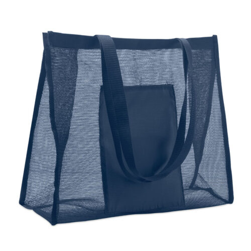 Bolsa de la compra de malla RPET y RPET 210D con asas cortas. Incluye gran bolsillo frontal abierto. Capacidad 20L, carga hasta 10 kg. medidas 44.5X14X34cm