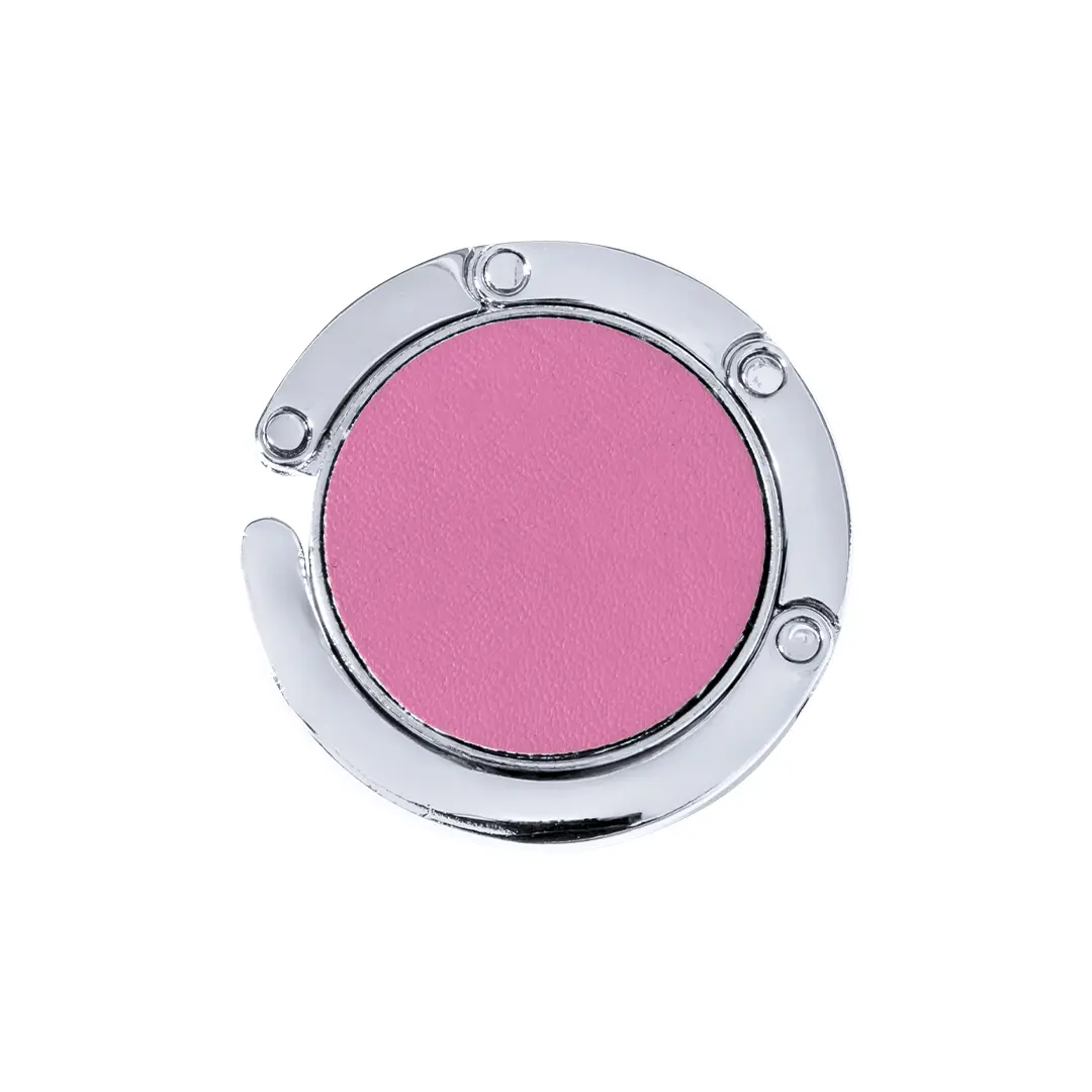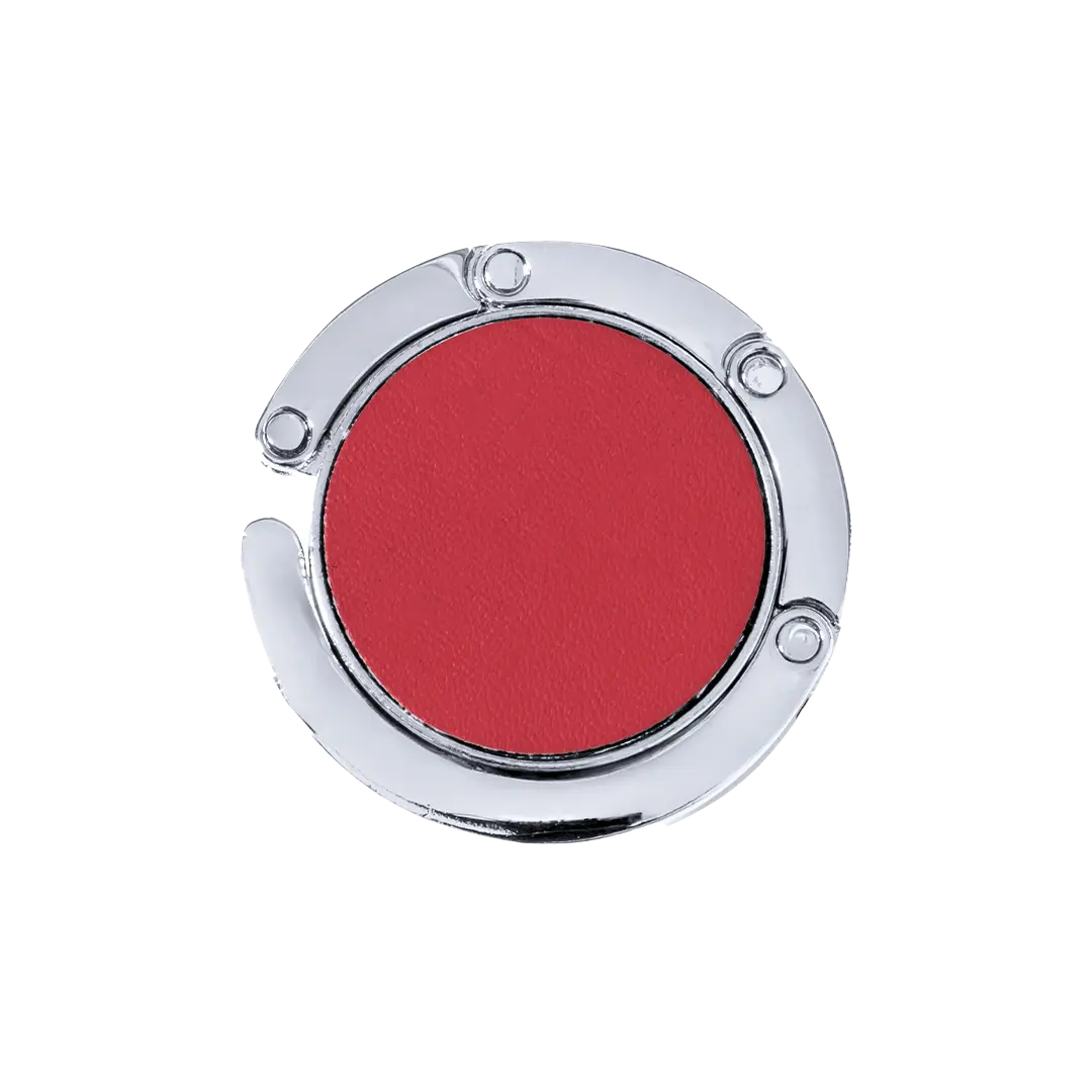 El Cuelga Carteras Skype está fabricado en metal, lo que garantiza su resistencia y durabilidad. La corona de polipiel en la parte superior le aporta un toque de sofisticación, además de estar disponible en tonos llamativos que se adaptan a diferentes estilos. Su estructura plegable permite guardarlo fácilmente en un bolso o cartera sin ocupar mucho espacio, mientras que el soporte metálico asegura una sujeción estable en la mesa o superficie donde se use.