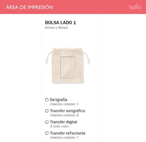 La bolsa de algodón ofrece una superficie ideal para estampado en serigrafía, permitiendo personalizar el juego con el logotipo de tu empresa, un mensaje promocional o lema corporativo. Este formato resulta perfecto para destacar tu marca de manera visible y amigable, asociándola a momentos de alegría y relajación.