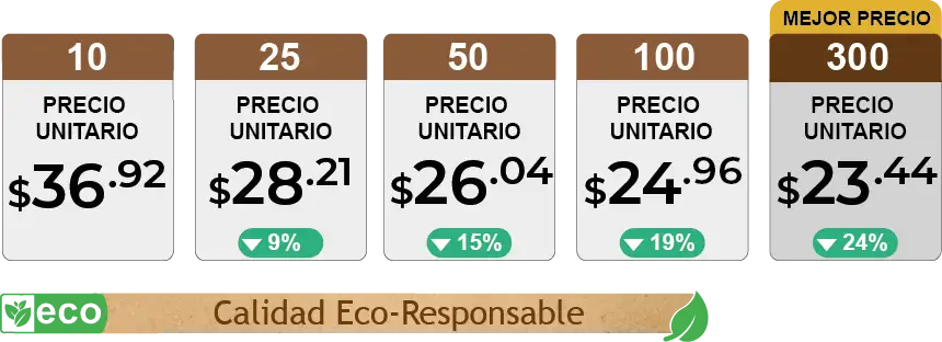 El corcho natural en la base no solo añade estilo, sino también un guiño sostenible, transmitiendo un mensaje corporativo alineado con el respeto al medio ambiente y las tendencias de diseño responsable.