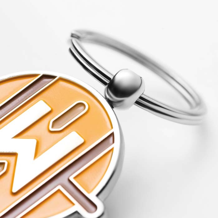 Llavero 2D de aleación de zinc chapado en forma personalizada, con anilla giratoria y logotipo en esmalte suave. 100% personalizable en diseño, forma y color.