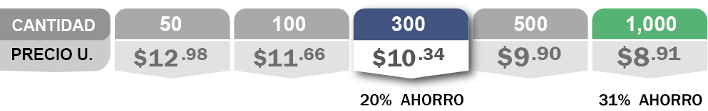 | Cantidad | 50 | 100 | 300 | 500 | 1000 |