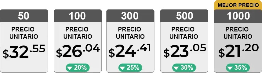 Precio $30.00 $24.00 $22.50 $21.25 $20.30