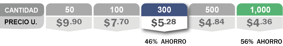 | Cantidad | 50 | 100 | 300 | 500 | 1000 |